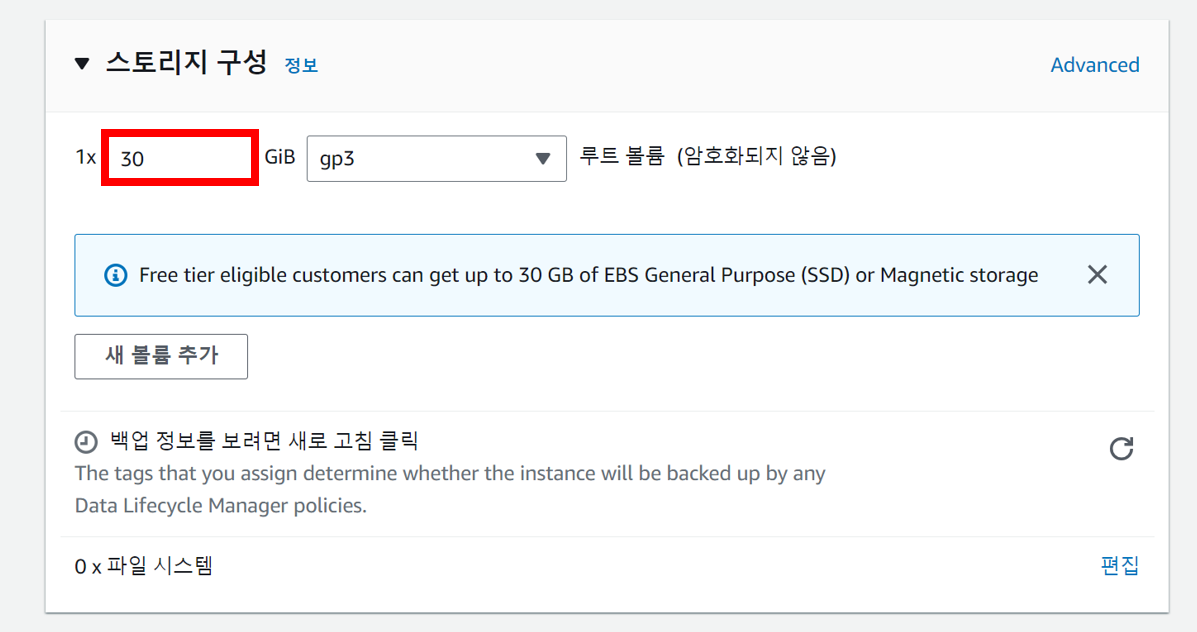 > ์คํ ๋ฆฌ์ง ๊ธฐ๋ณธ ๊ฐ์ 30GB๋ก ์์