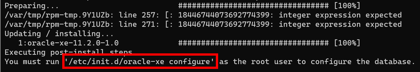 rpm -ivh oracle-xe-11.2.0-1.0.x86_64.rpm